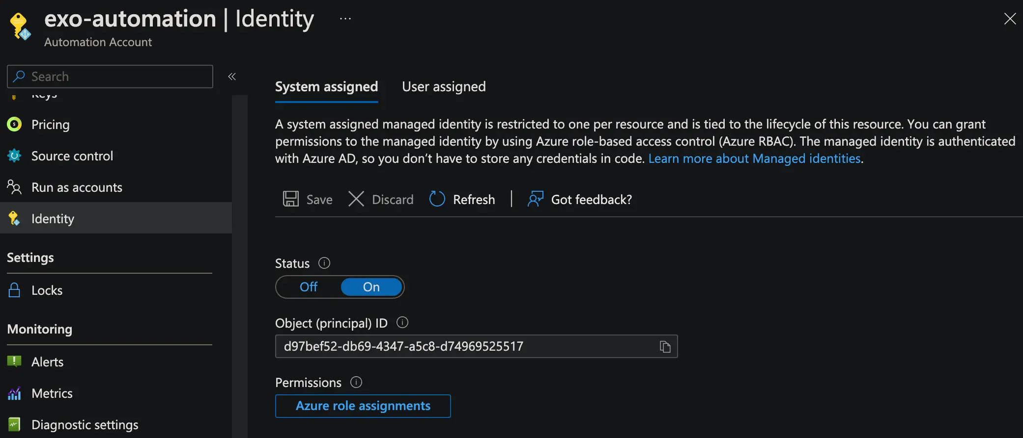 Finally, let’s gather the necessary information about our Managed Identity, assign it ExchangeManageAsApp, and make it so we can use it with the Graph API.