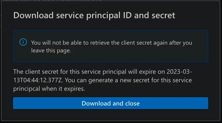 This is the same as creating an App registration, assigning the role, and creating a client secret, but the experience is a little nicer and has you download the secret so you don’t forget to copy it down :)