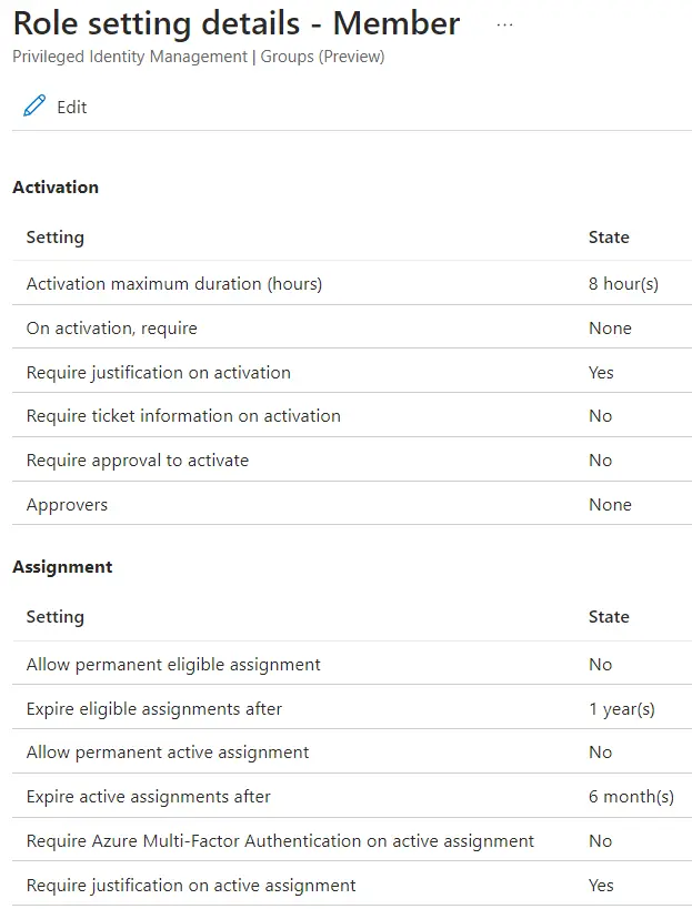 The last thing you might want to do is check the settings for PIM for this group to make sure approval, justification, timing, etc. are all how you want them. With PIM for Groups, Member and Owner can have different settings, so if you made the admin eligible to be a Member, you need to edit those settings.