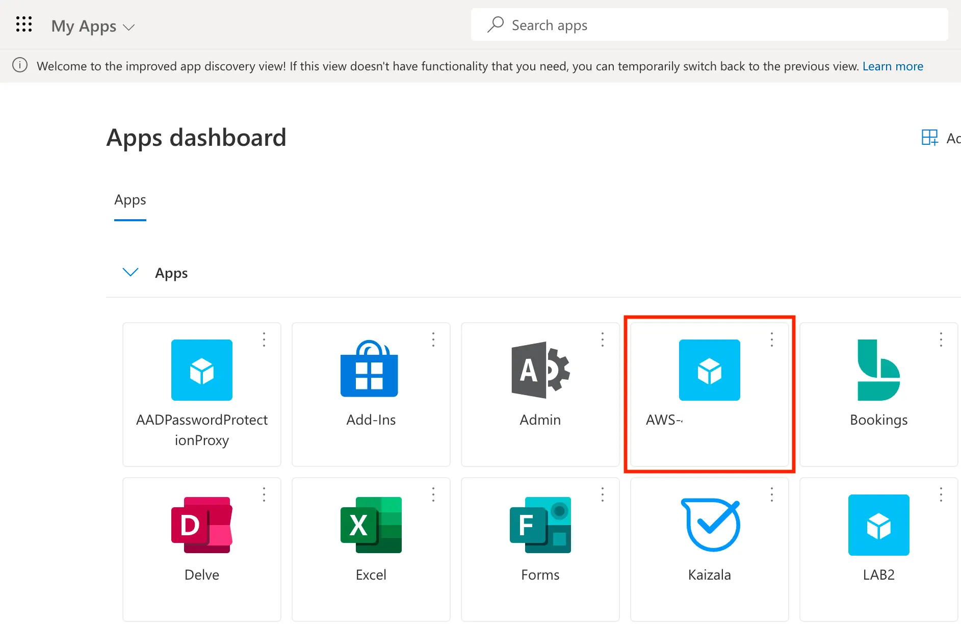 Now with our group membership activated, we can head to https://myapps.microsoft.com and click the AWS app tile.
