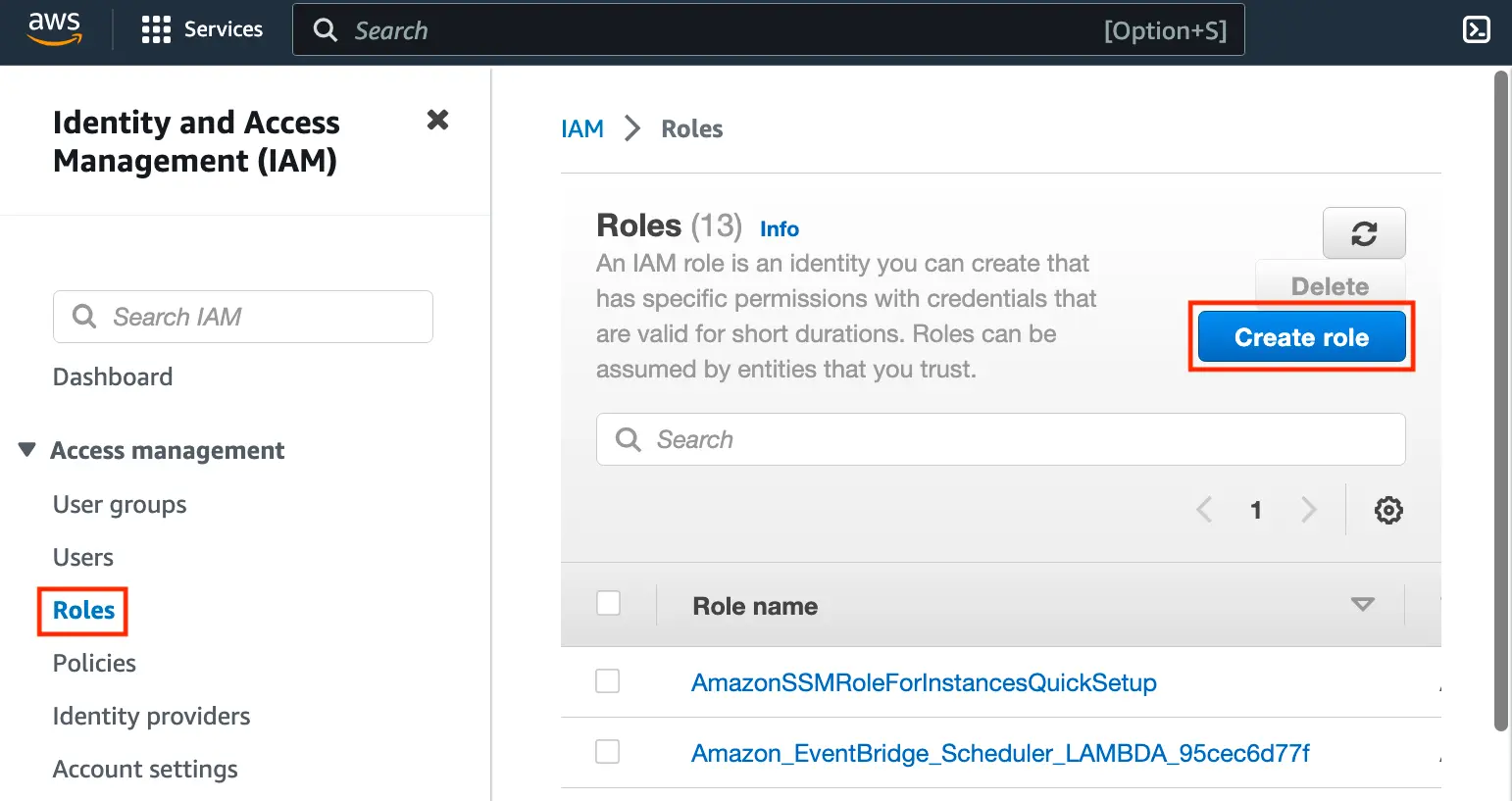 On the next page, provide the name for the role that you will use as the last part of your group name, then scroll to the bottom and click Create role.