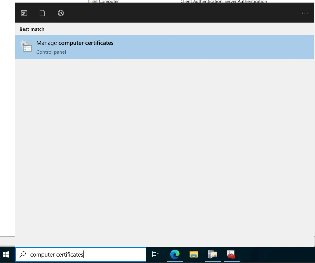 Now we need to request the certificate, so let’s search for computer certificates and open the computer certificates MMC.