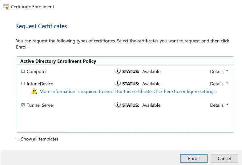 Now you check your template, and you should be able to click Enroll.