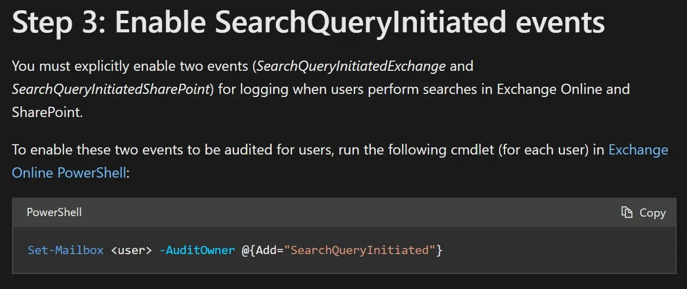 Final note: It is important to keep track of auditable events, and I will do my best to announce new ones when they are added (very rare). For a full list of auditable events, take a look at the docs: Manage mailbox auditing